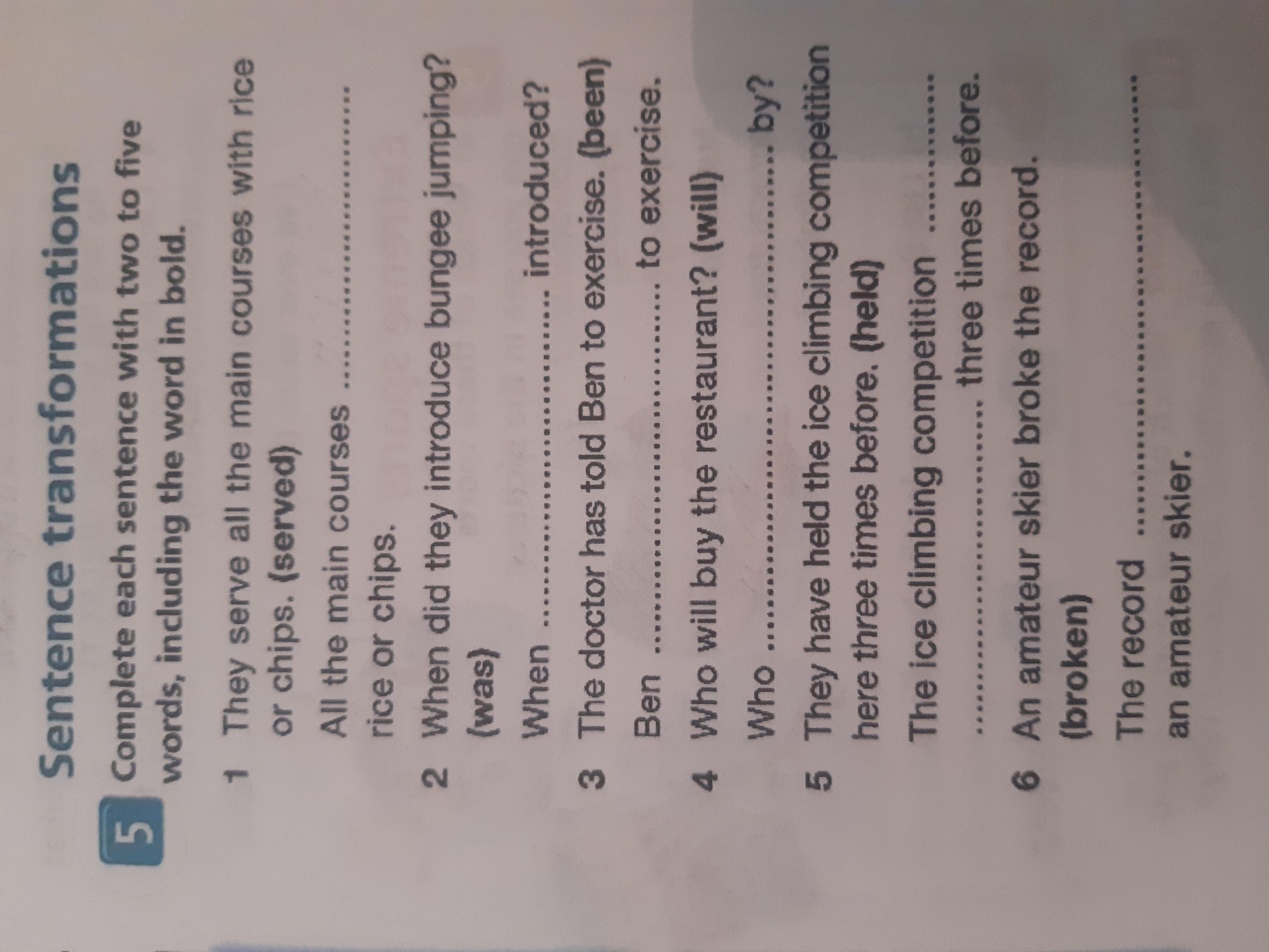 Complete each sentence with two to five words, including the word in bold. ( Завершите каждое предложение двумя-пятью словами, включая слово, выделенное жирным шрифтом. )