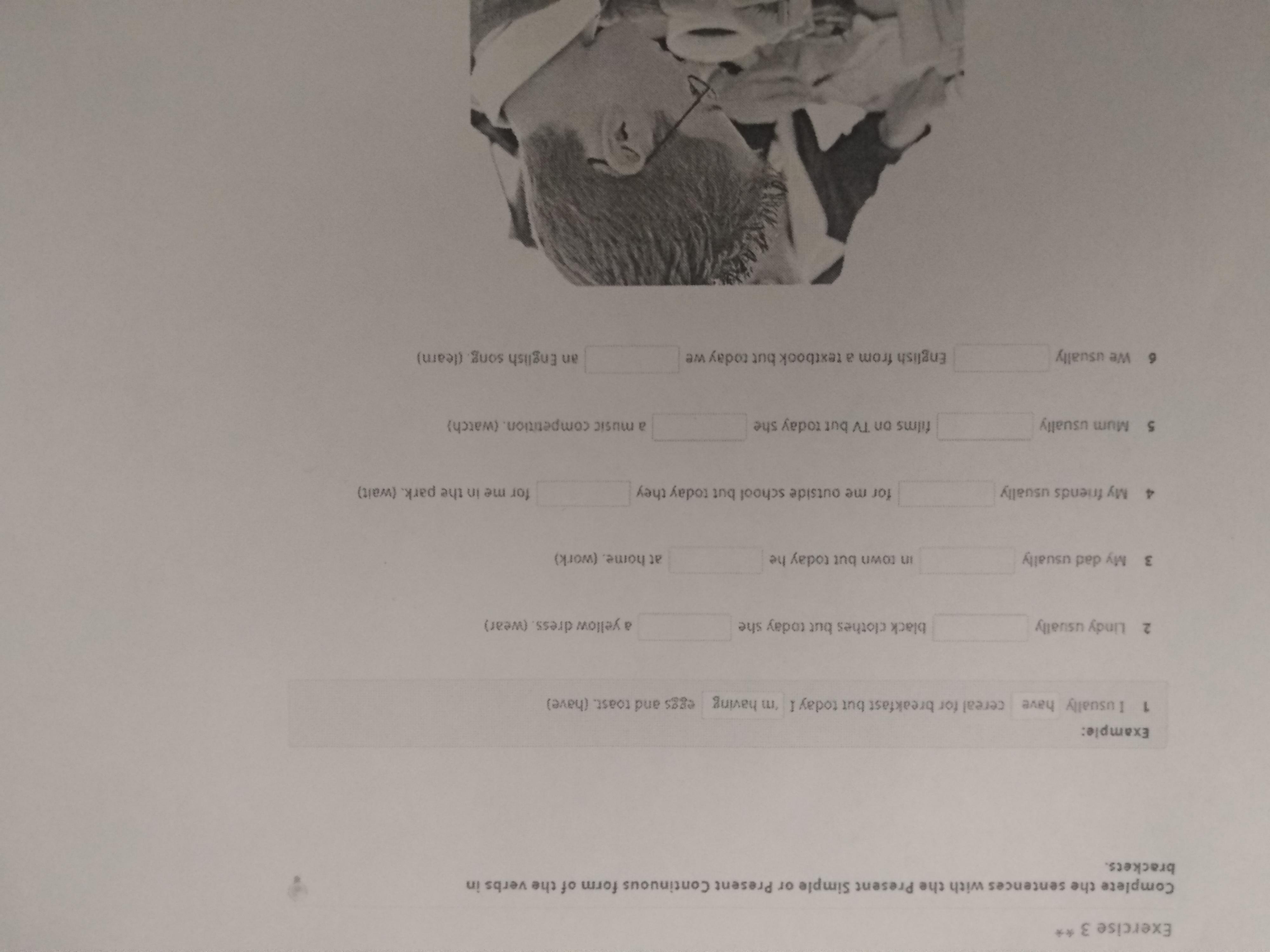 2. Linda wears/ she is wearing