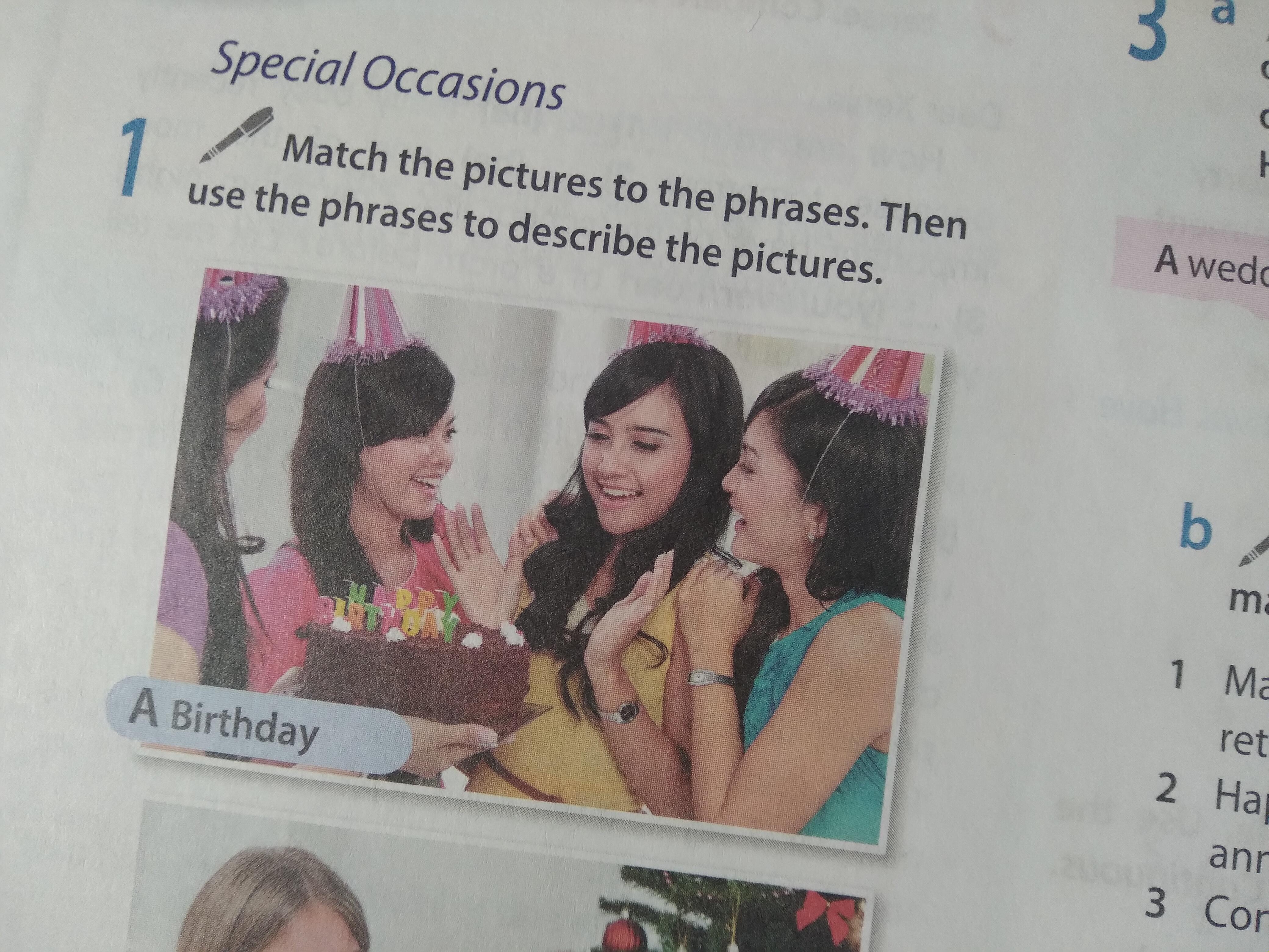 1. On the picture I see birthday party. Girls celebrating birthday girl.She she blows candelas on the cake