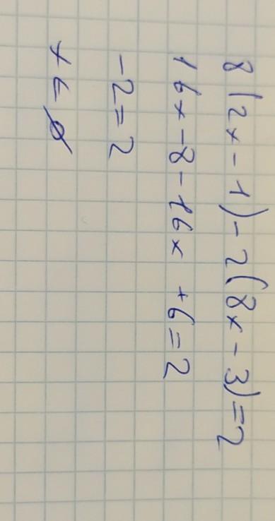 Сначало упрощаем и убираем скобки:16х-8-16х-6=2