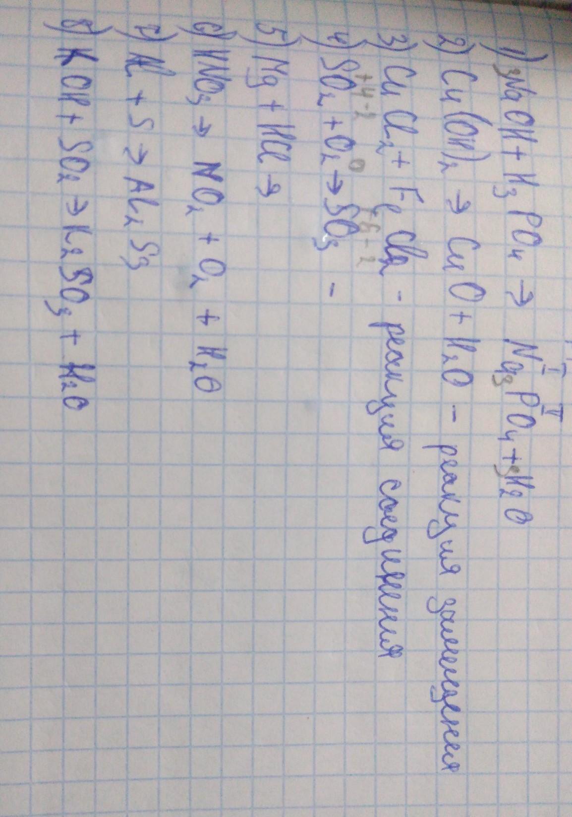5)Mg+2HCl=MgCl2+H2-реакция замещения