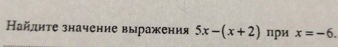 5х - ( х+2 ) = 5× (-6) - ( (-6) +2 ) = -30 + 4 = - 26