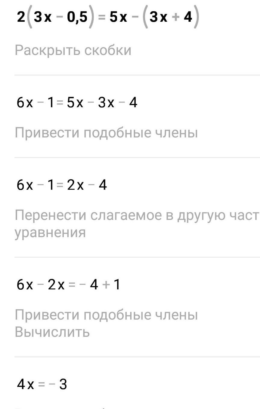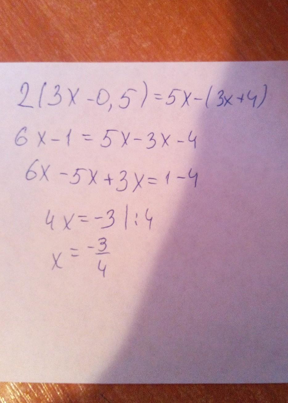 2(3х-0,5)=5х-(3х+4) можно решение на листочке пожалуйста даю 30 баллов