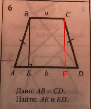 таблица 8.6 АВСД-трапеция АБ=СД,БЕ перпендикулярно АД,<БЕД=90°а||b,найти АЕ и ЕД,помогите пожалуйста