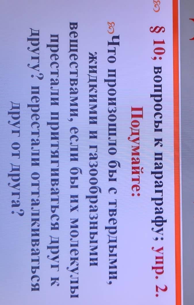 Если бы молекулы перестали притягиваться, то жидкие и твердые вещества исчезли бы. Все они находились бы в газообразном виде, перемешавшись друг с другом.