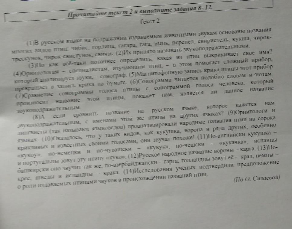 2) какой факт по мнению автора текста, свидетельствует о том, что то или иное название птицы является звукоподражательным? запишите ответ.