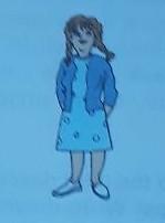 Любит косички. Не любит выделятся человек скромный(Судя по рукам которые она спрятала за себя). Жизнерадостный человек. Не занимается спортом. По виду скорее всего живет на частных домах так как в городе все ходят в кроссовках и тд. Из одежды: У неё платье бирюзового цвета с желтыми на ним цветочками. Так же синеватая накидка и белые туфельки.