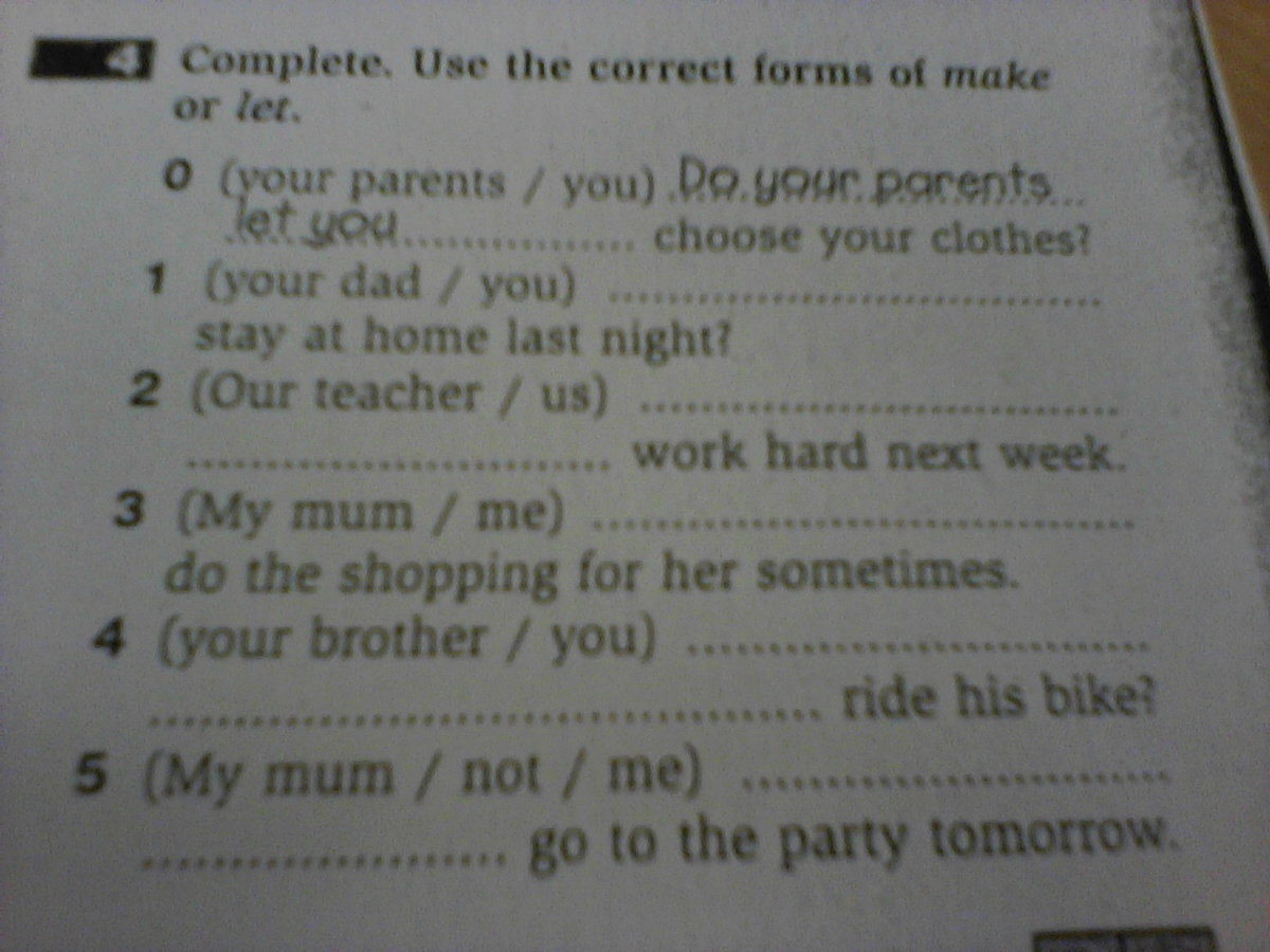1 Did your dad make 2 Our teacher will make us 3 My mum