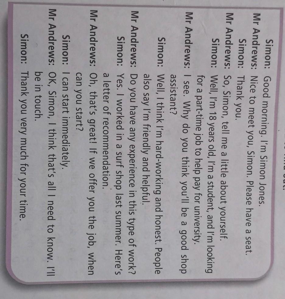 Simon: I think I'm hard-working. I'm also frendly and helpful.
