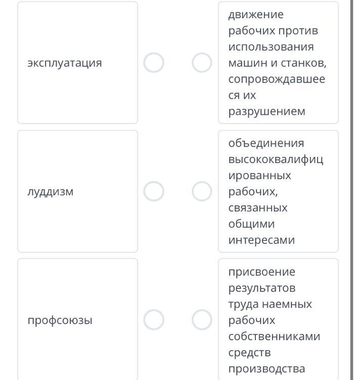 эксплуатация - 3 луддизм -1 профсоюзы -2