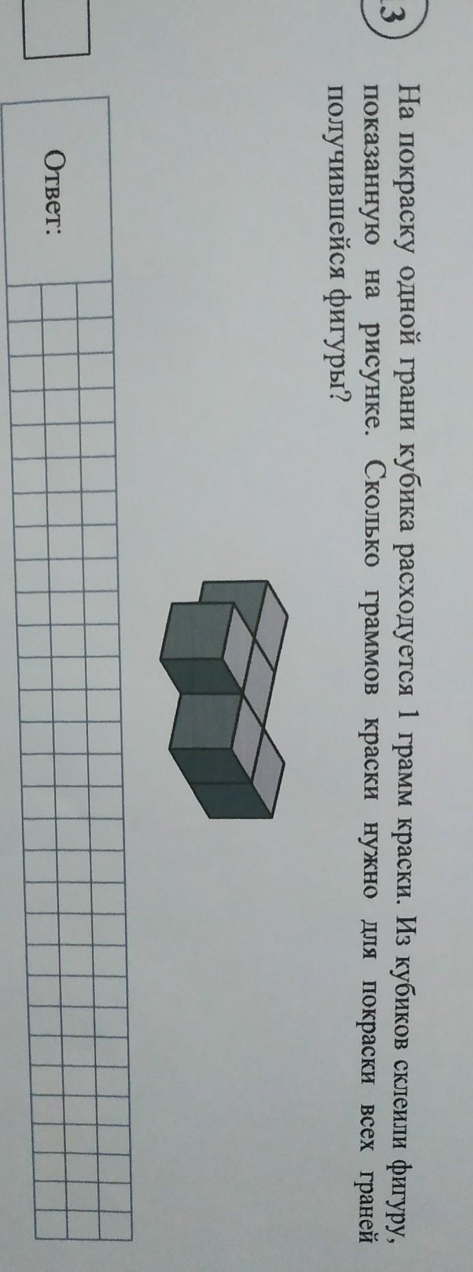 На покраску одной грани кубика расходуется 1 грамм краски. Из кубиков склеили фигуру,