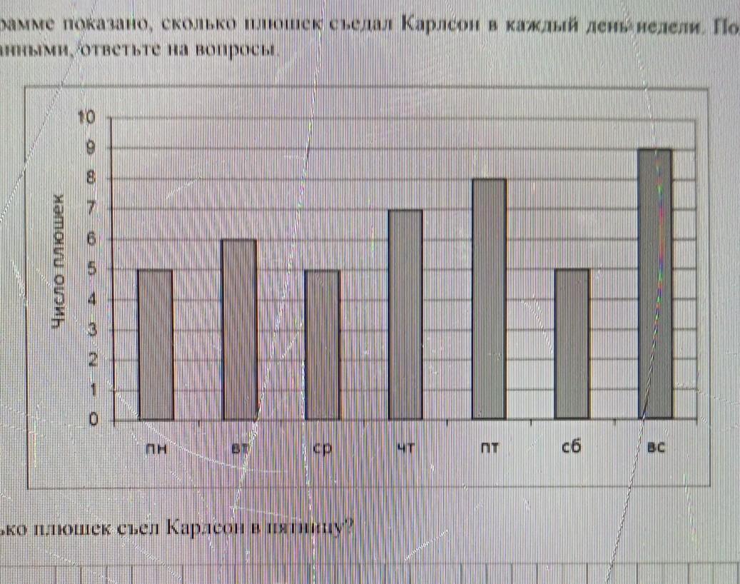 На диаграмме показано, сколько плюшек съедал Карлсон в каждый день недели. Пользуясь