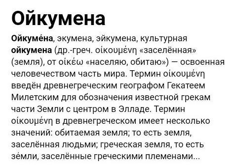 Ойкумена - освоенная человечеством часть мира.