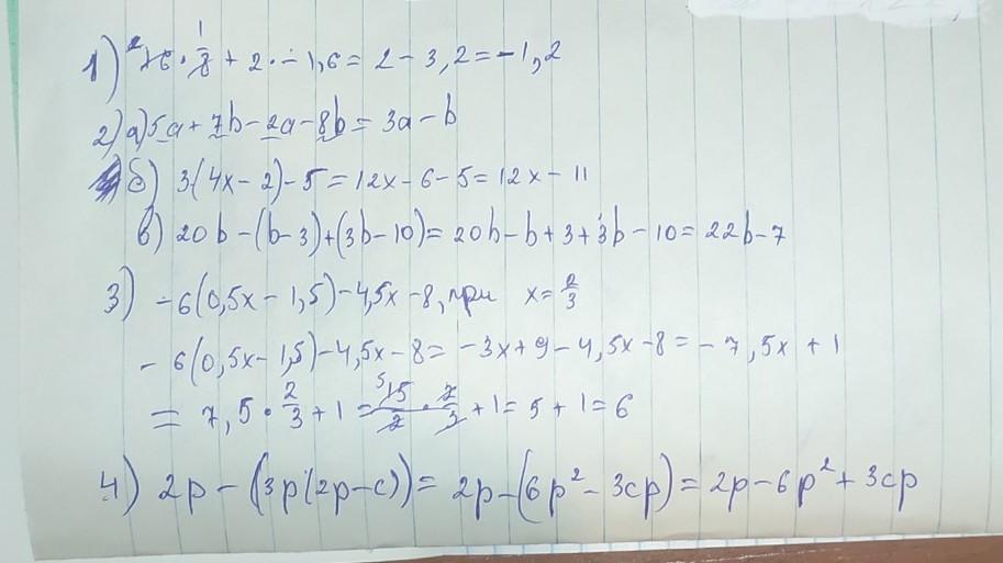 2.упрастите выражение: 5а+7б-2а-8б; б) 3(4х-2)-5; в)20б-(б-3)+(3б-10)