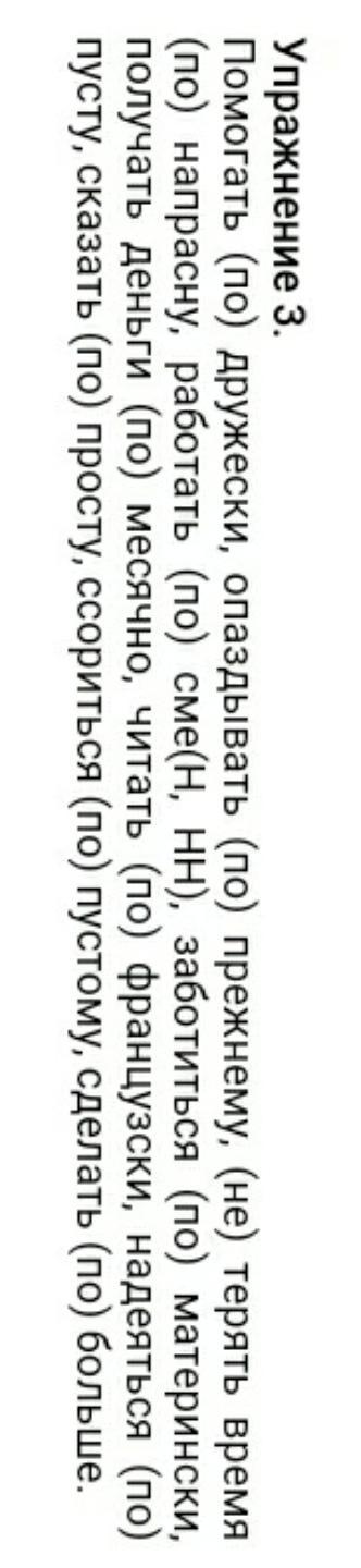 помогать по-дружески,о опаздывать по-прежнему, не терять время понапрасну, работать по смен, заботиться по матерински, получать деньги помесячно, читать по французски, надеяться попусту, сказать попросту, ссориться по пустому, сделать побольше.