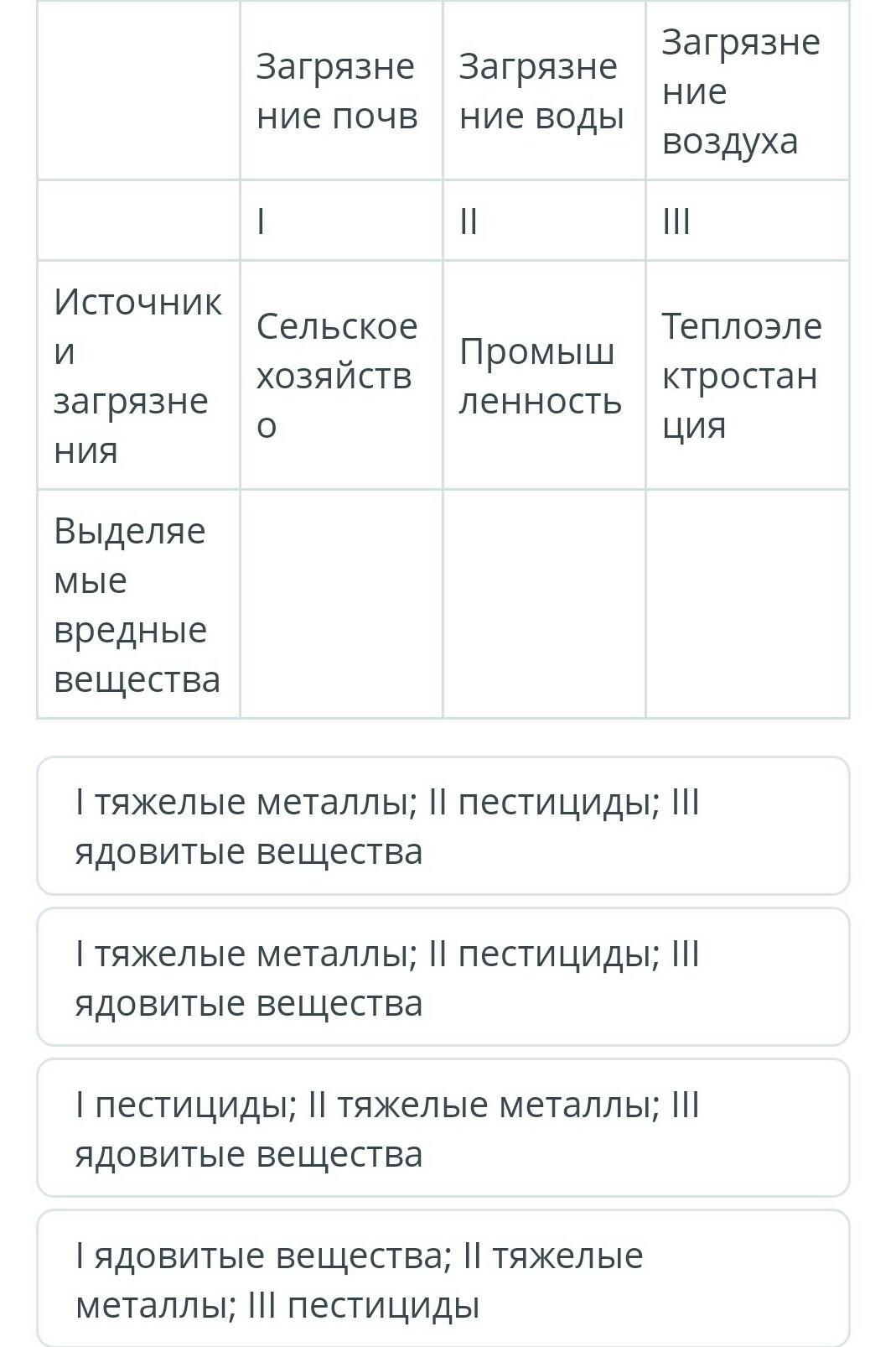 I пестициды, II тяжёлые металлы, III ядовитые вещества