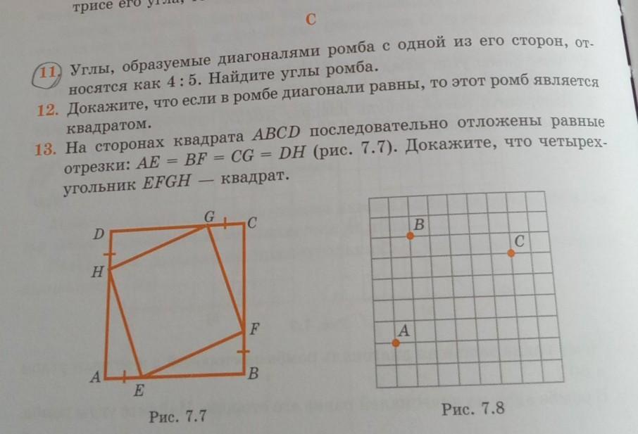 13) все малые треугольники равны по 2 сторонам и углу, значит и все их гипотенузы равны