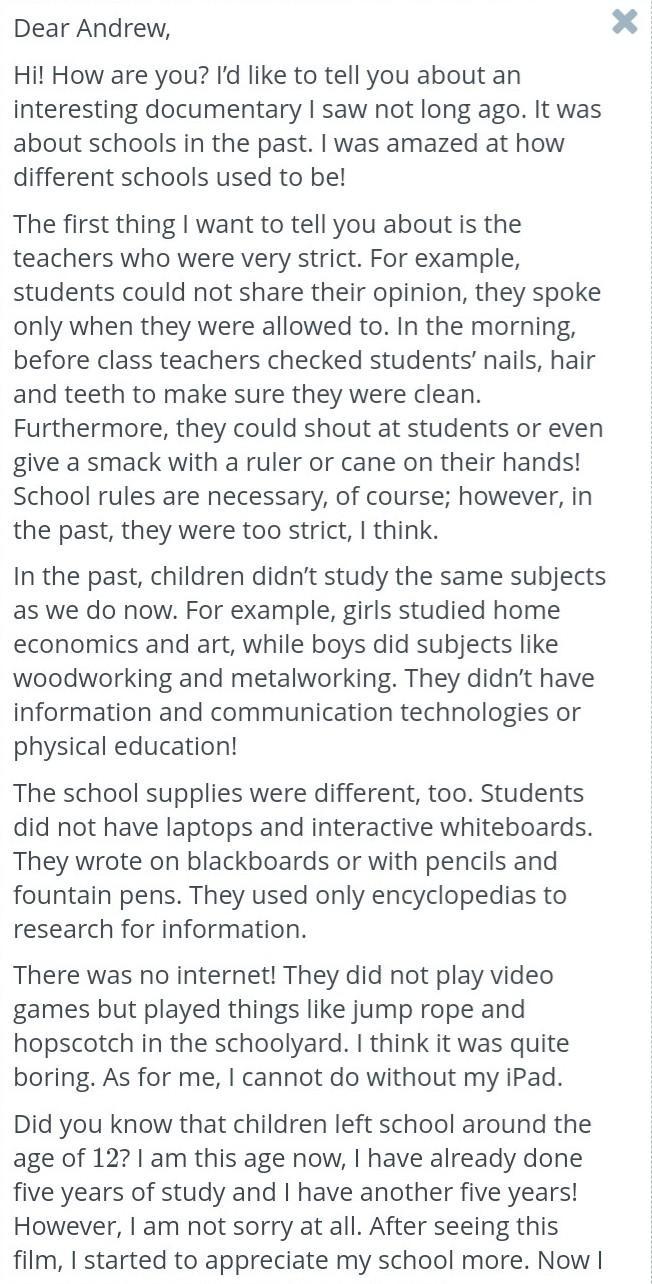 Ответ:Daniel learnt about school in the past from a film. ( True )