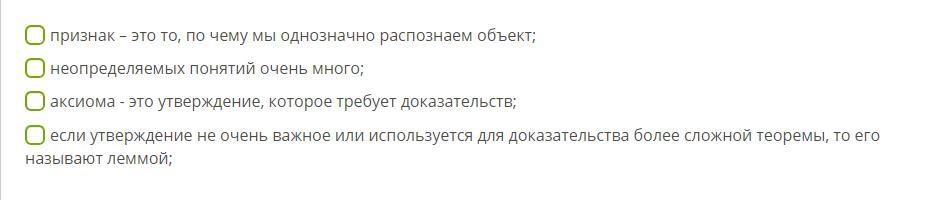 "Есть неопределяемые понятия – те, которым мы не даем определения. Например, точка, прямая.