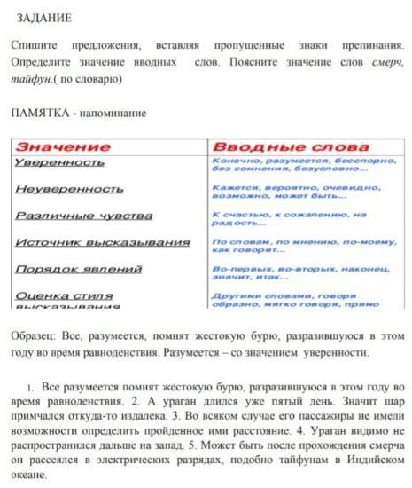2.А ураган длится уже пятый день, значит, шар примчался откуда-то издалека. Значит- Порядок явлений. 3. Во всяком случае, его пассажиры не имели возможности определить пройденное ими расстояние. Во всяком случае- Порядок явлений. 4. Ураган, видимо, не распространился дальше на запад. Видимо- Неуверенность. 5. Может быть, после прохождения смерча он рассеялся в электрических разрядах, подобно тайфунам в Индийском океане. Может быть- неуверенность