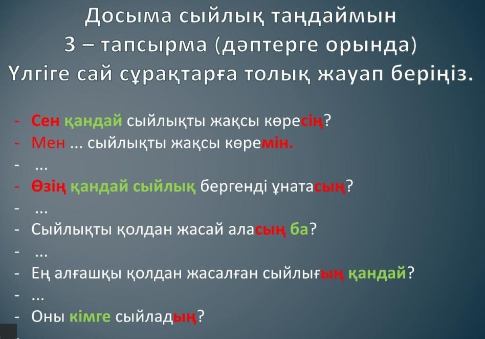 мен қонжық сыйлықты жақсы көрем!(напримерр же)