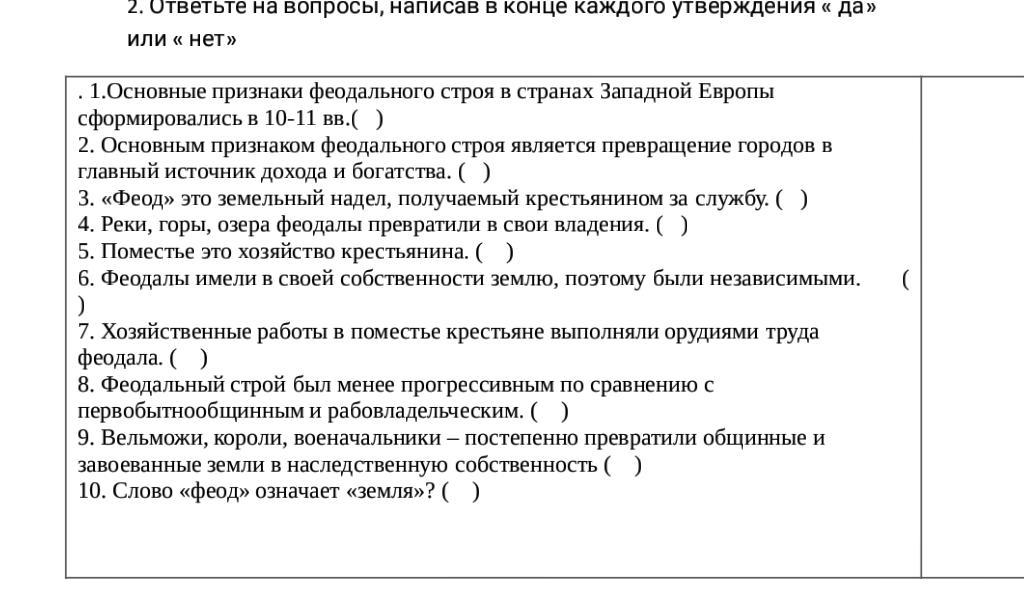 7. Хозяйственные работы в поместье крестьяне выполняли орудиями труда феодала. (нет)