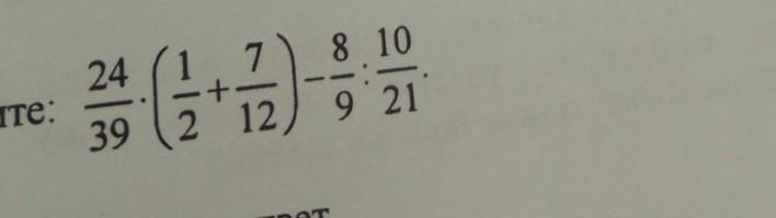 (24/39)×(1/2+7/12)-(8/9):(10/21)=
