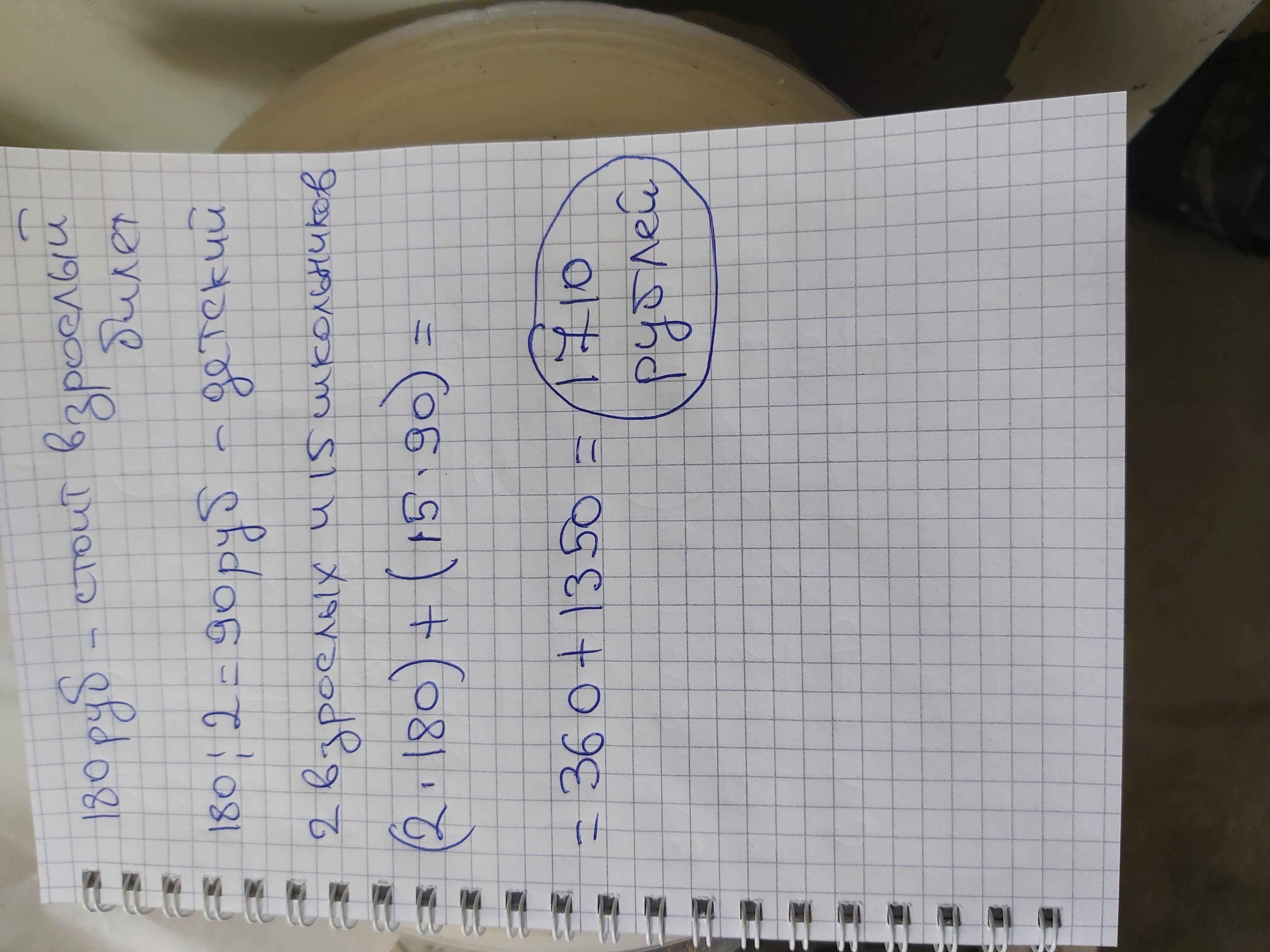 стоимость проезда в электричке 180 рублей . билет школьника составляет 0,5 от этой стоимости. сколько рублей будет стоить проезд для 2 взрослых и 15 школьников