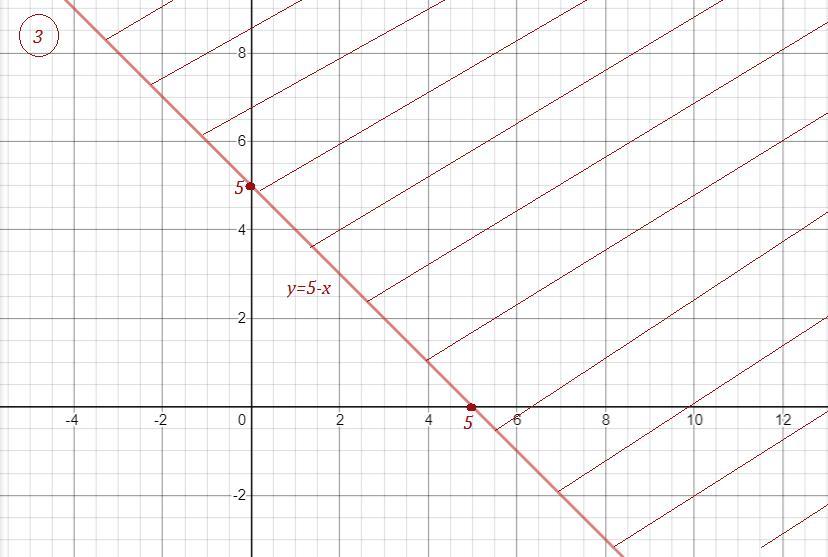 верхняя полуплоскость относительно прямой у=5-х, сама прямая входит в область.