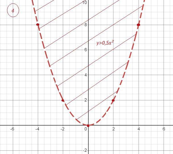 левая полуплоскость относительно прямой х=4 , сама прямая входит в область . .