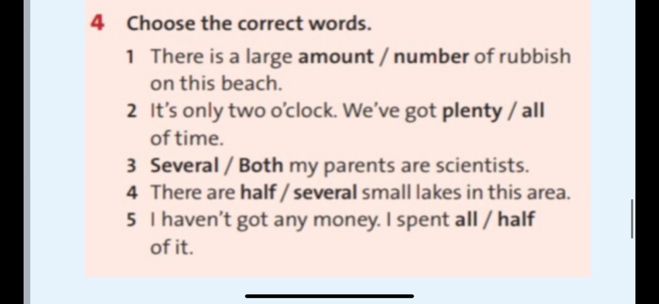 5. I haven't got any money. I spent all of it.
