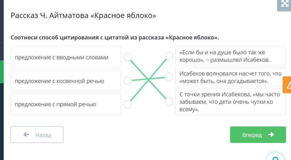 Соотнеси способ цитирования с цитатой из рассказа Красное яблоко