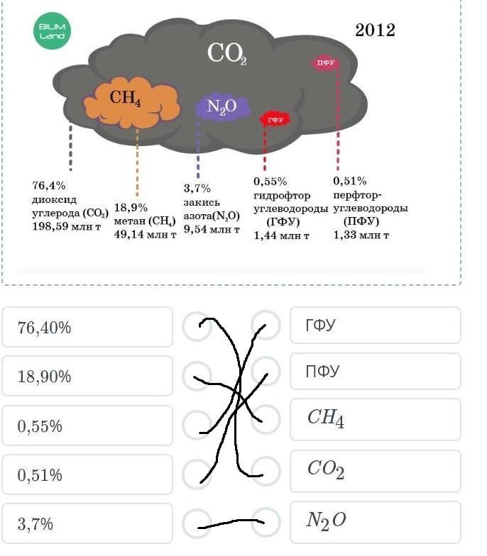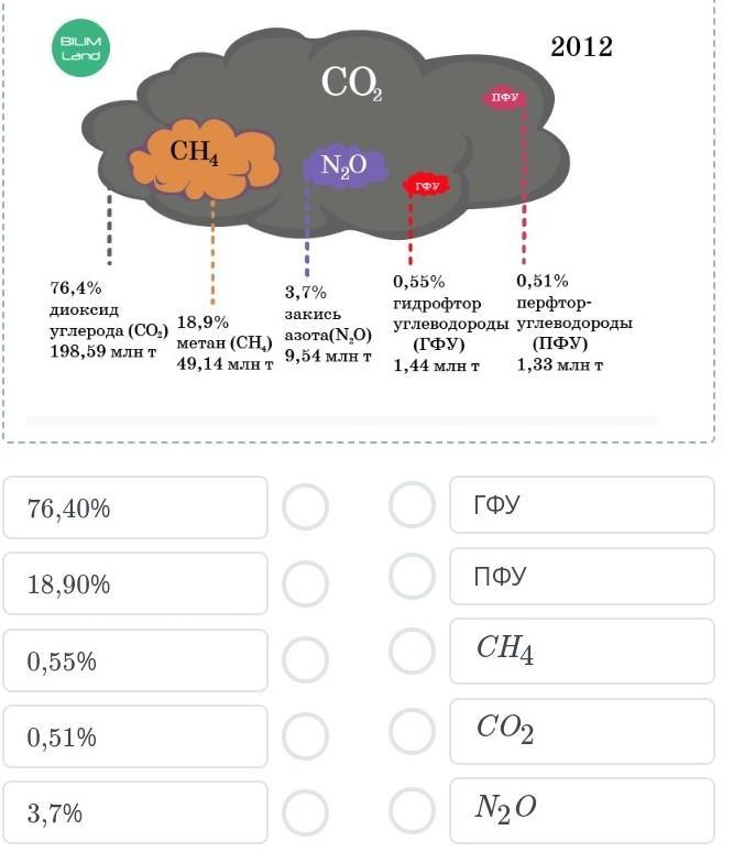 Прочитай текст Рассмотри рисунок. Соотнеси газы пропорции которые не занимаются атмосфере. Климат в Казахстане резко-континентальный республика расположена в таких климатических зонах как лесостепи степи и полупустыни пустыни в последние годы климат страны ощутимо изменился в Казахстане увеличилось число дней с максимальной температурой воздуха и уменьшилось количество холодных дней основная причина климатических изменений деятельность человека антропогенное изменение климата это результат роста концентрации углекислого газа в атмосфере жителей Казахстана ждать деградации ледников исчезновение многих видов животных растений увеличение объемов углекислого газа многочисленные серия.