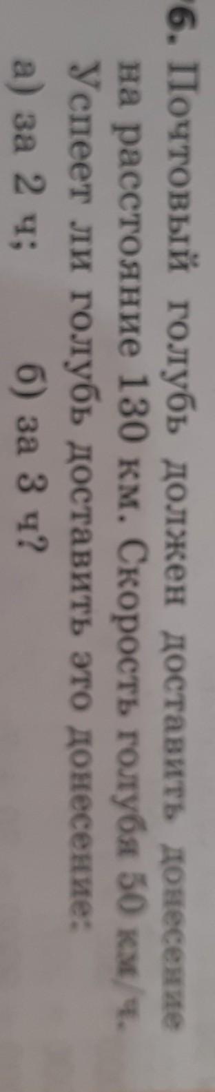 получится, что голубь за 3 часа сможет пролететь 150км, а расстояние=130км, значит, голубь успеет долететь за 3 часа