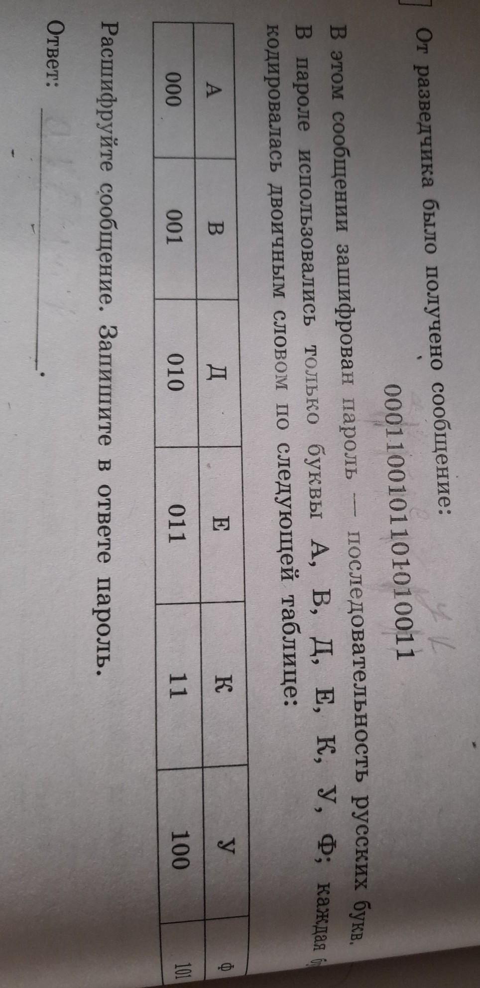 Расшифруйте сообщение. Запишите в ответе пароль.