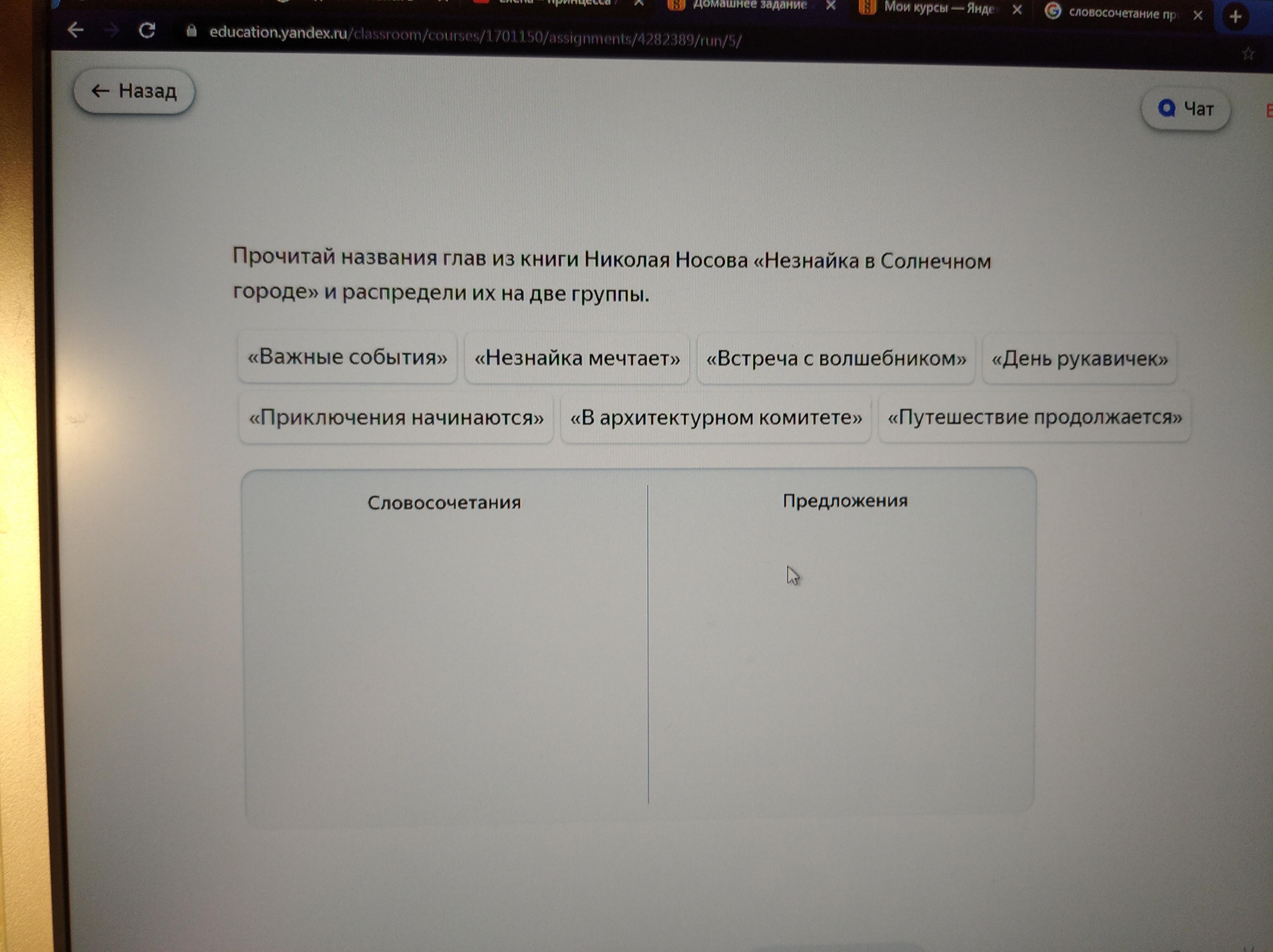 Словосочетания: важные события, встреча с волшебником, день рукавичек, в архитектурном комитете