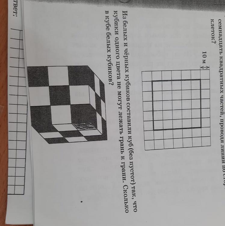 из белых и чёрных кубиков составили куб (без пустот) так , что кубики не могут лежать грань к грани. сколько в кубке былых кубиков ?