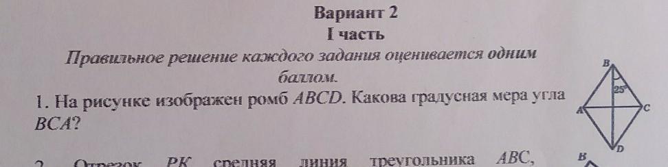 тип B поделен на две части одна из них 25° значит и вторая 25°, вместе они 50°, так как треугольник ABC равнрсторонний то все углы равны (А=B=C) значит угол С(тоже самое что BCA ибо С посередине) равен 50°