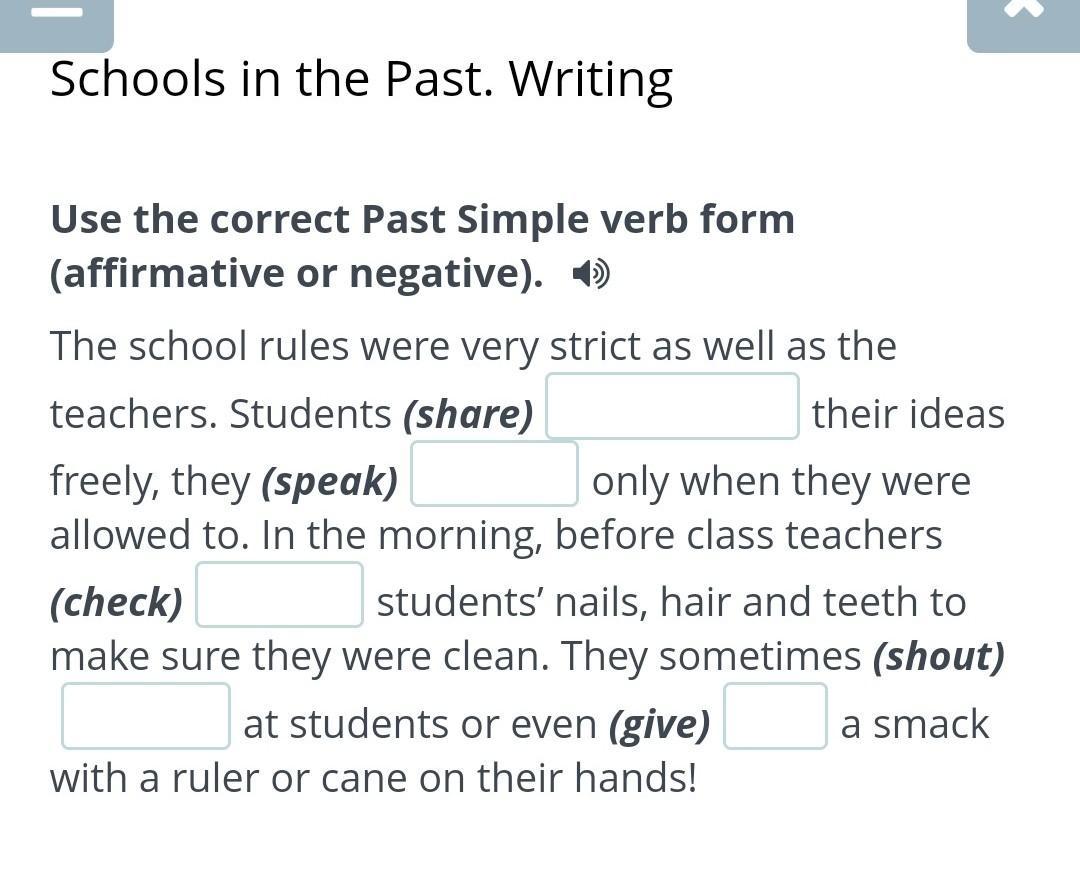 The school rules were very strict as well as the teachers. Students (share)____