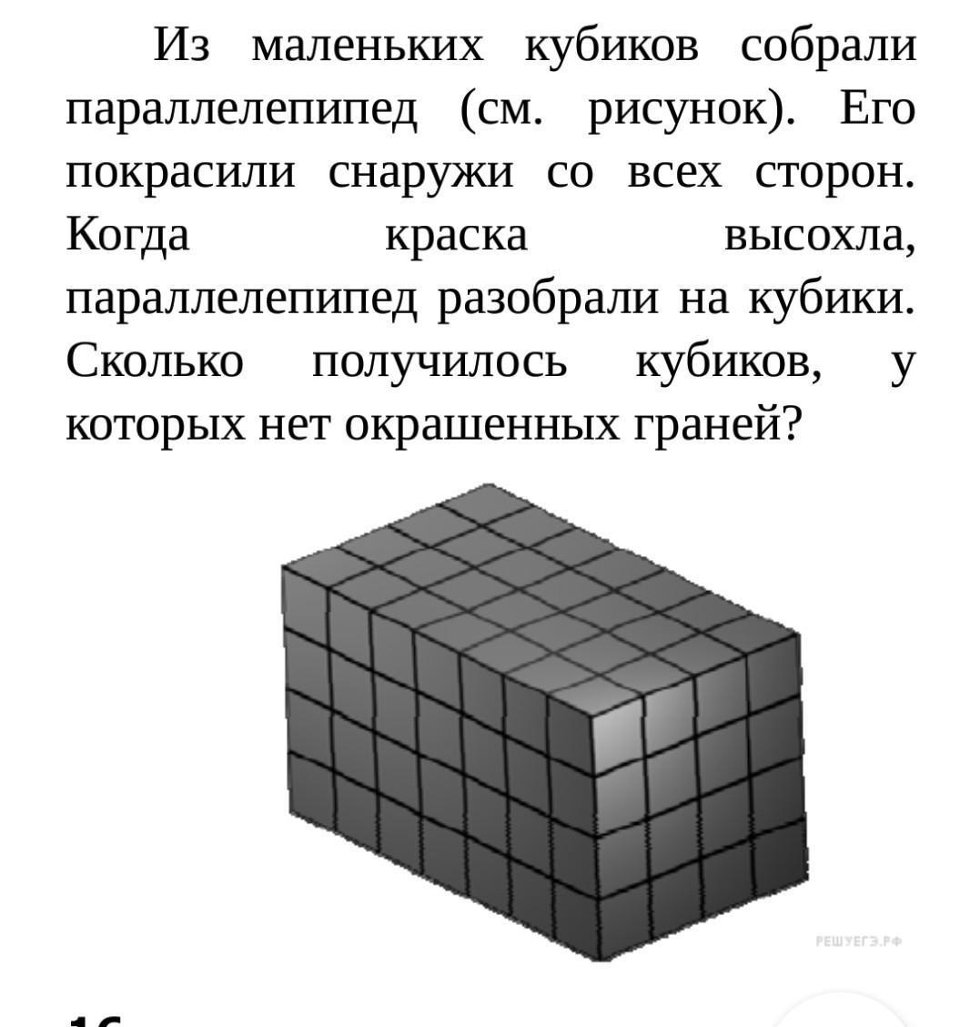 Ширина первлелепіпеду 7 висота 4 довжина 4, отже всередині паралелепіпеду є куби яких нерозмалювали, 5 помножити на 4 = 20