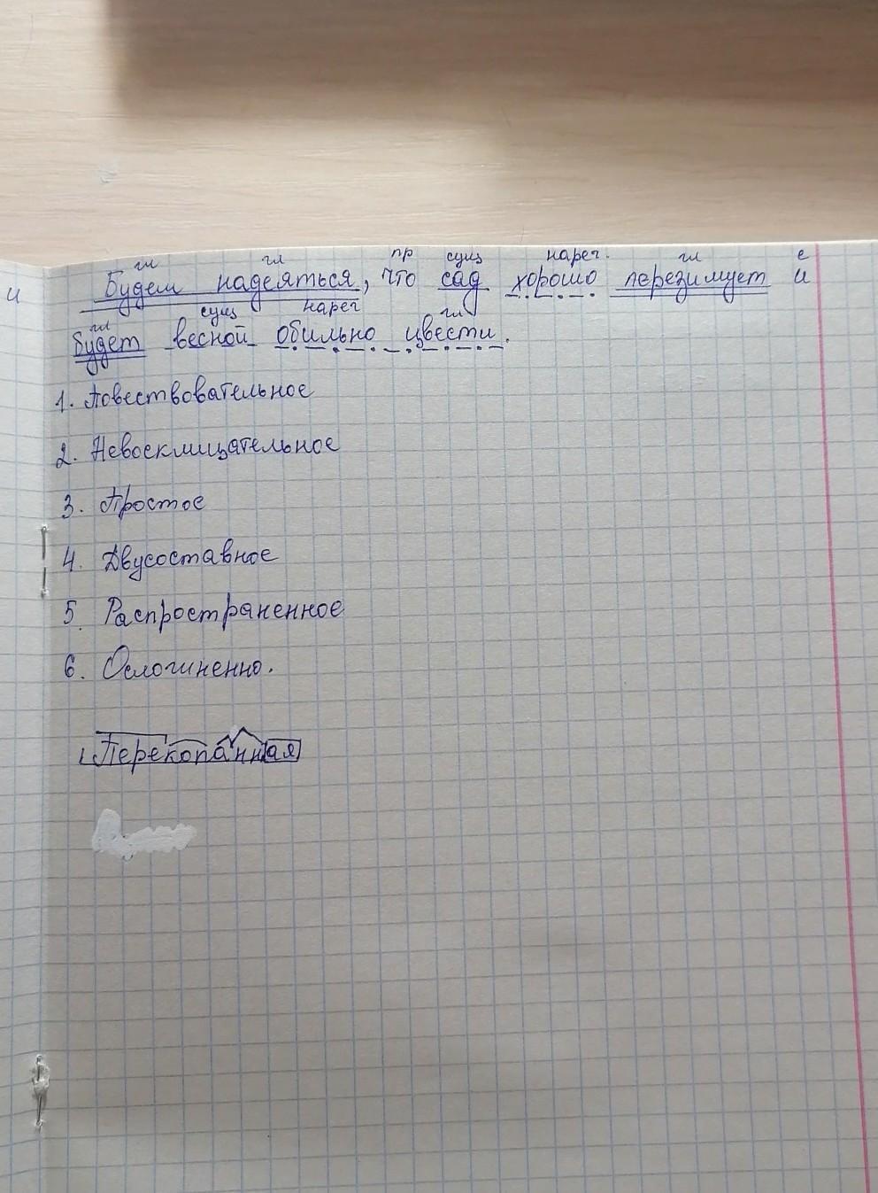 сделать синтаксический разбор предложения <<будем надеятся, что сад хорошо перезимует и будет всеной обильно цвести>>