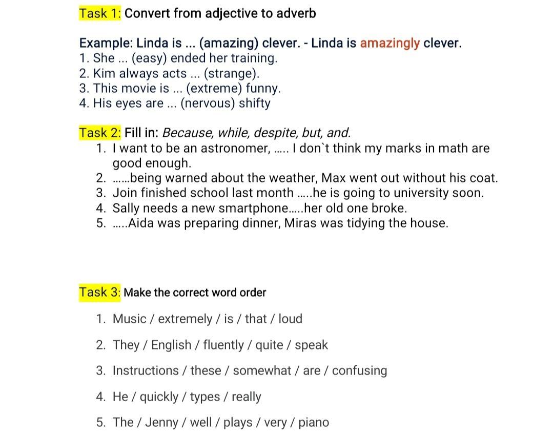 Нужна помощь по английскому языку. Нужно выполнить 3 небольших задания: