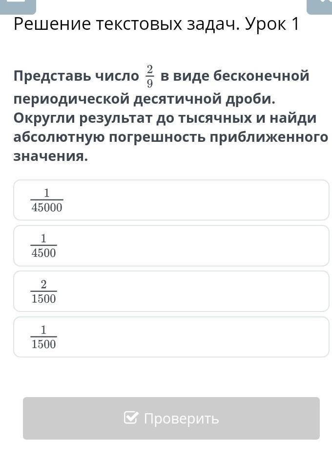 в виде бесконечной периодической десятичной дроби. Округли результат до тысячных и найди абсолютную погрешность приближенного значения.
