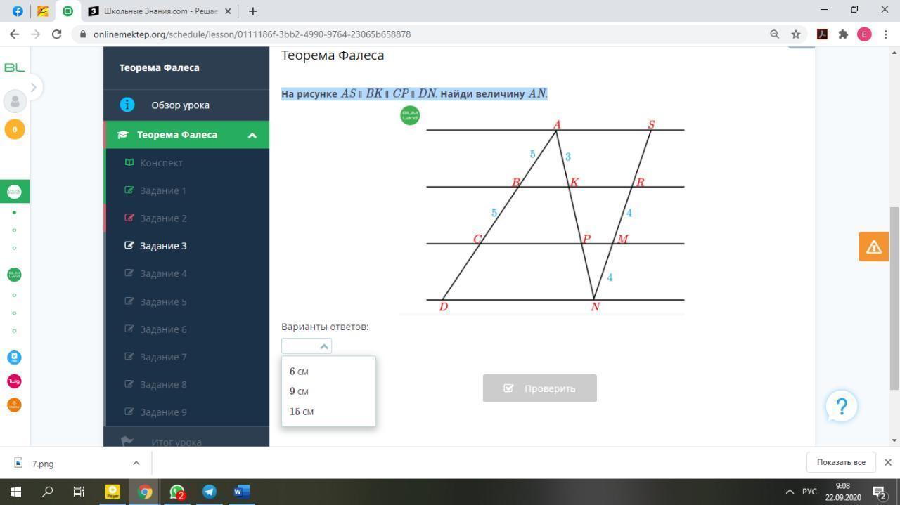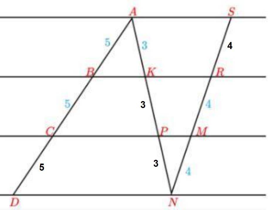 RM=MN=4, значит, KP=PN=3.