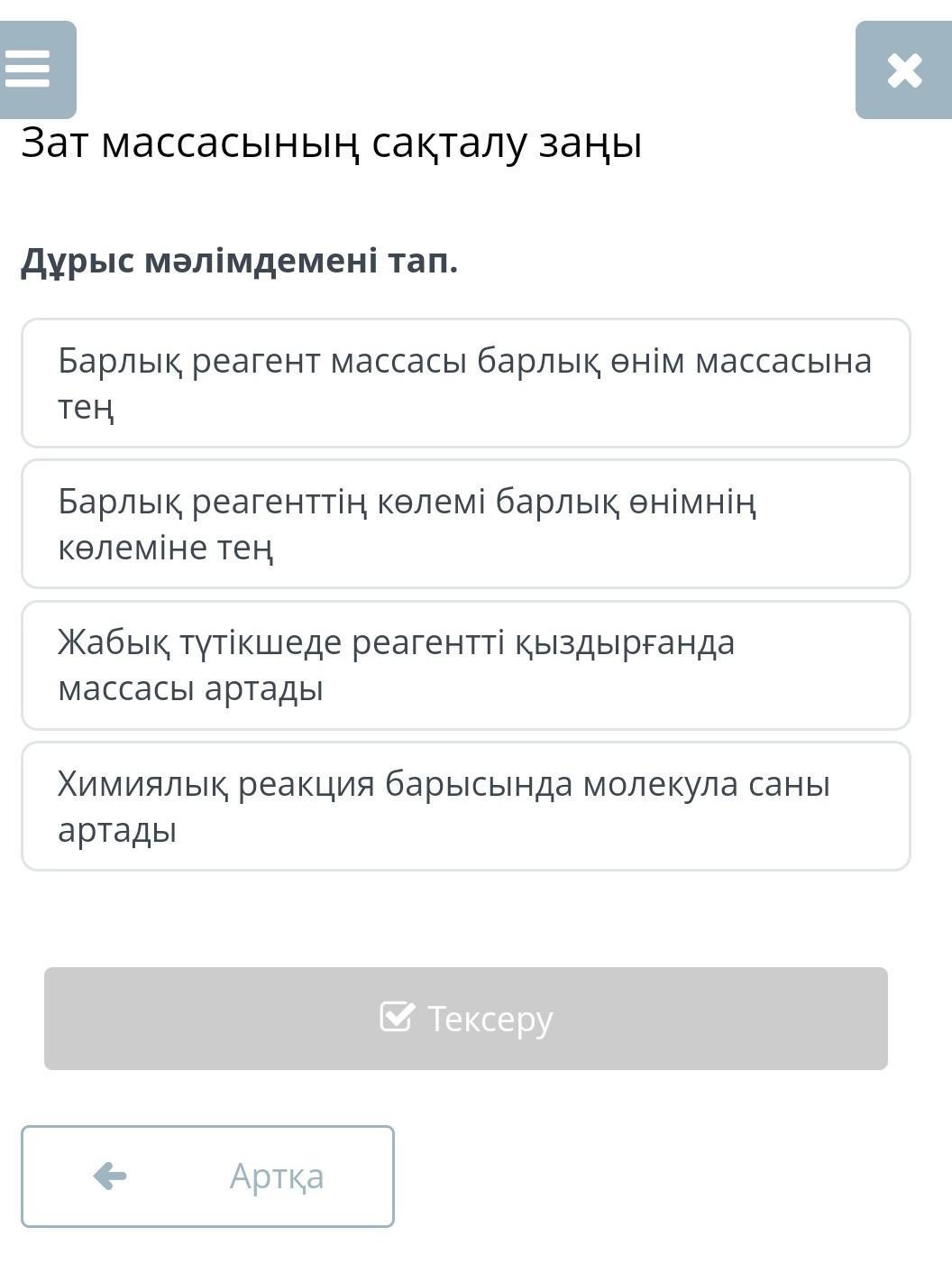 Барлық реагент массасы барлық өнімнің массасына тең.