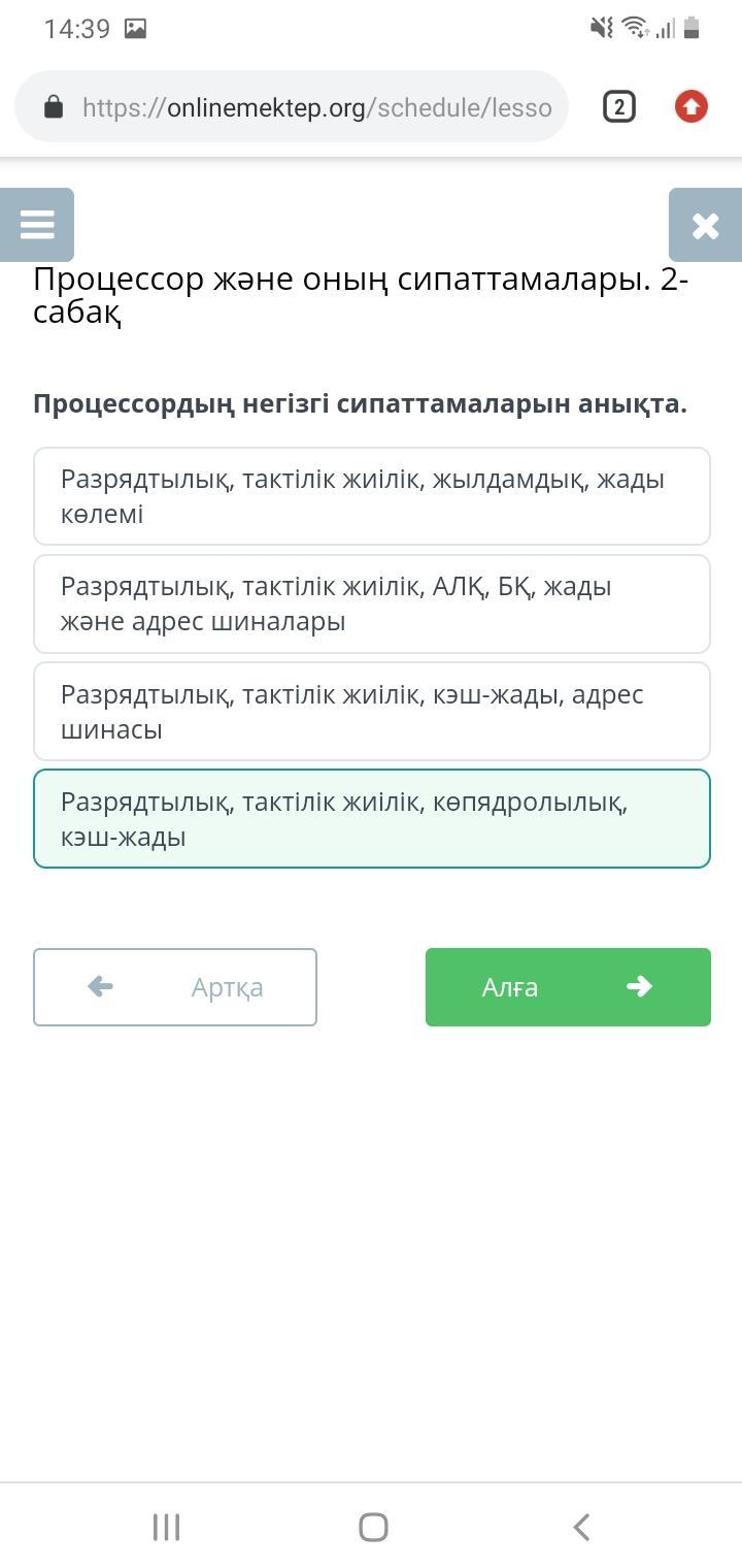 Разрядтылық, тактілік жиілік, кэш-жады, адрес шинасы