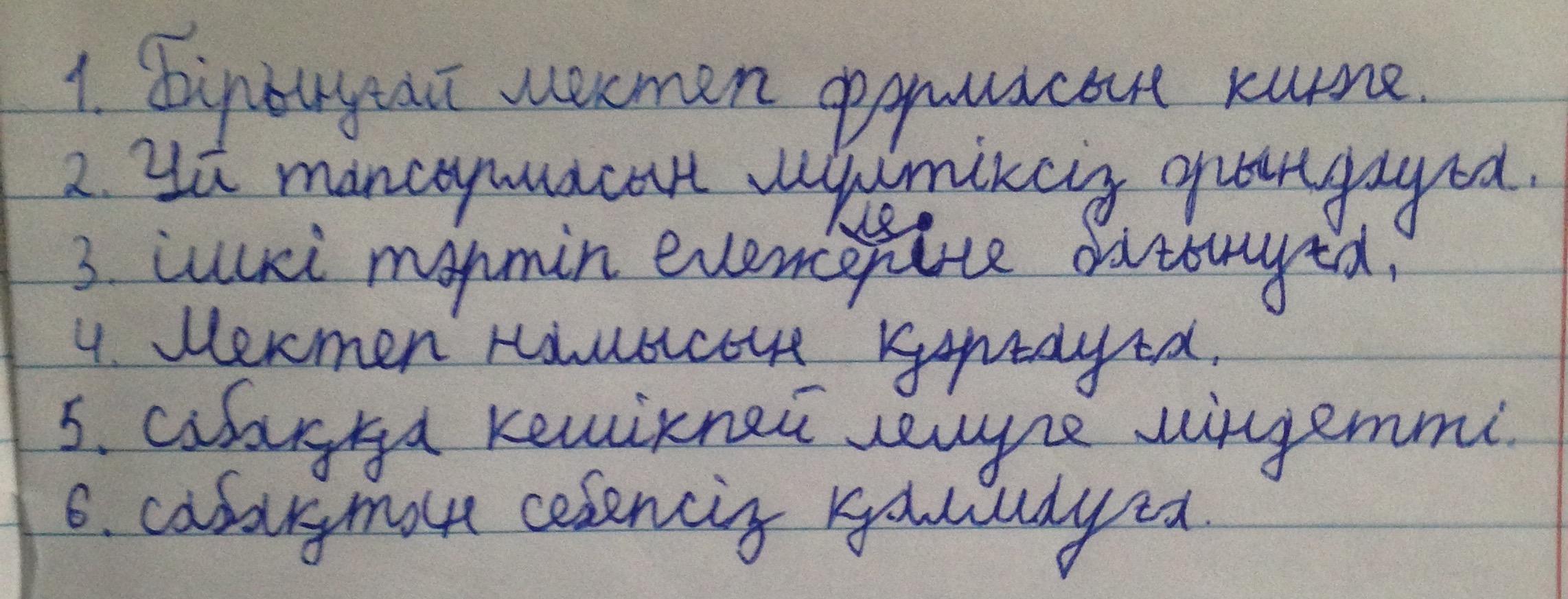 мектебіңнің қысқаша ережесін құрастыр.