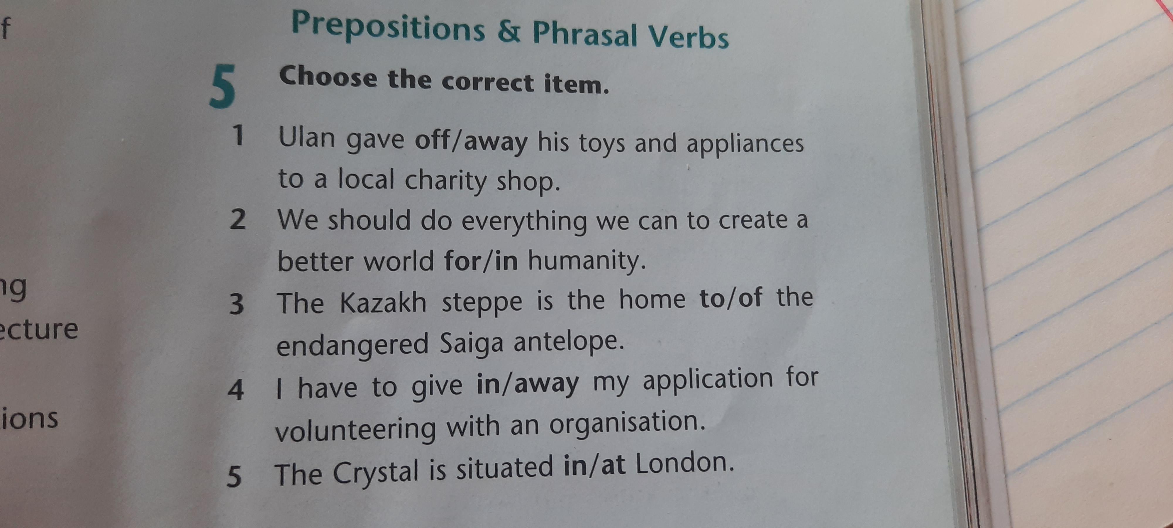 1)Ulan gave of his toys and appliances to a local charity shop.