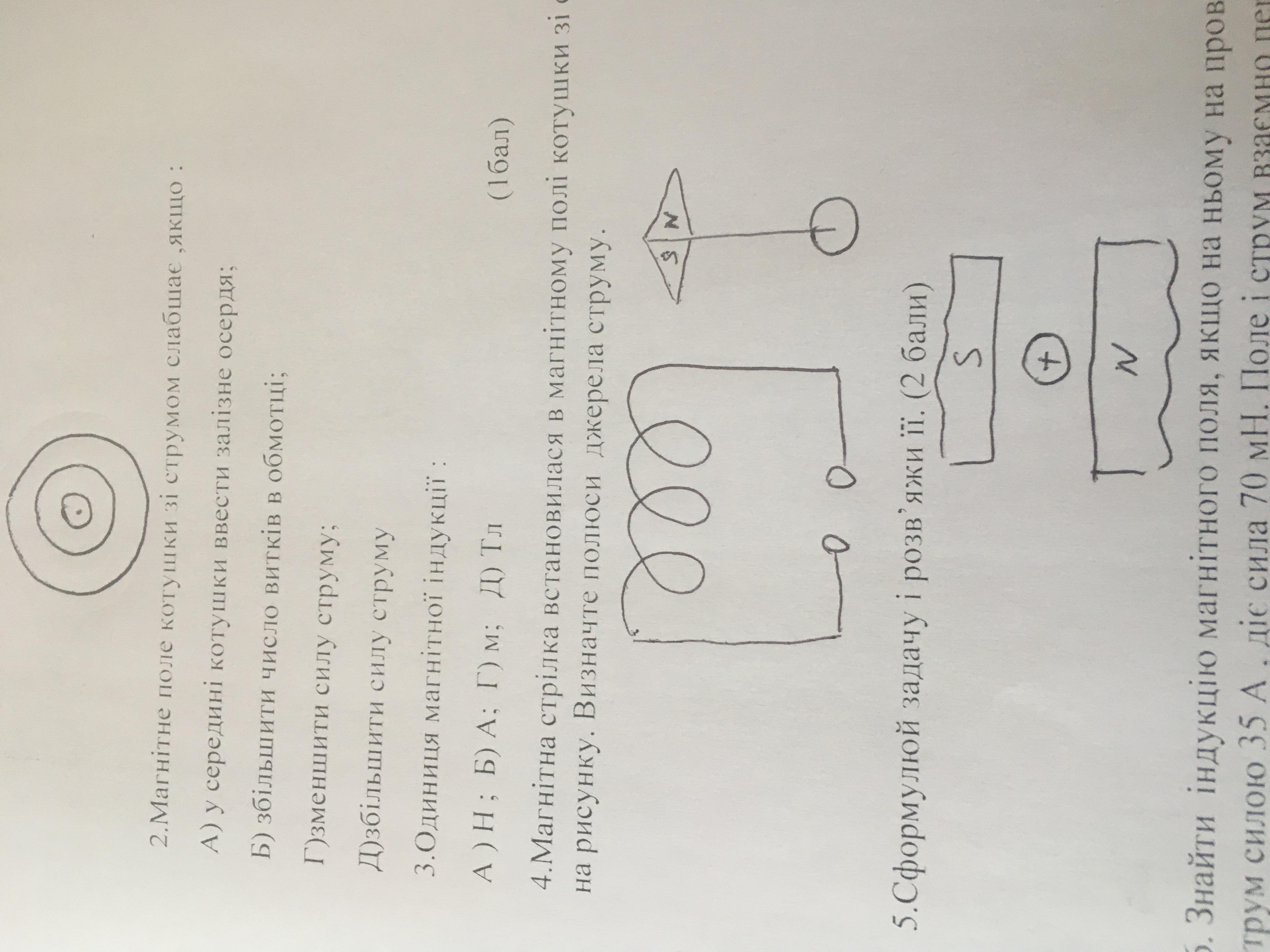 Магнітна стрілка встановилася в магнітному полі котушки зі струмом так як показано на рисунку. Визначте полюси джерела струмуд