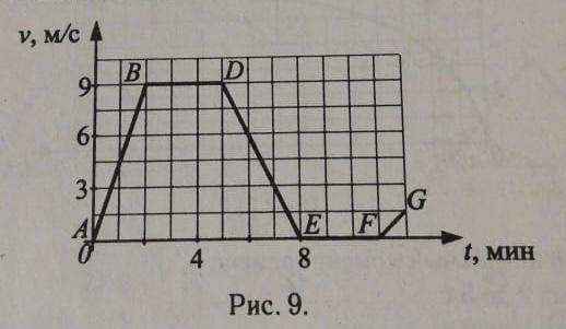на представленном графике показано, как меняется скорость тела с течением времени(см.рис9). Определите, каких участах тело оставалось неподвтжным
